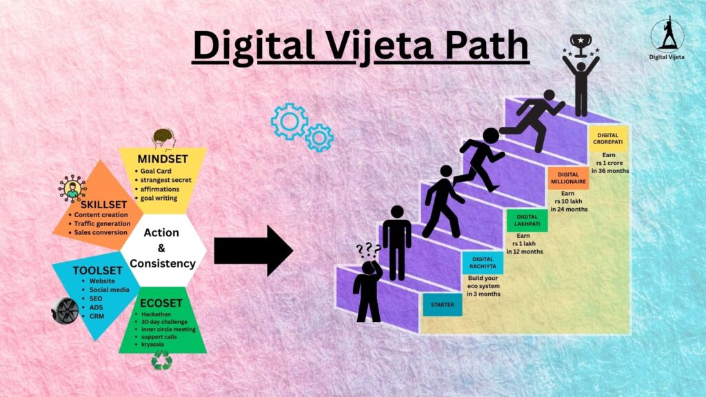 Take Your Offline Business To Online In Just 30 Days ! Learn Digital Marketing in Hindi With India’s Leading Coach Click here 3 Steps To Make Business Successful Digitally Create Presence Make Your Self Available And Discoverable Generate Traffic Make People Come On Your Website And Social Media Handles Create Conversions Create Offers, Stacks, FOMO and Scarcity To Maximize Sales About Us Digital Vijeta is not just a training platform it's a movement. Ved Prakash Kushwaha Founder – Digital Vijeta Digital MSI Coach Who Should Learn Digital Marketing? Business Owners: Want To Grow Online And Boost Revenue. Professionals: Want To Attract More Clients And Build Authority. Freelancers: Want To Offer High-Demand Digital Services. Startups & Entrepreneurs: Want To Launch And Scale Cost-Effectively. Homemakers & Students: Want To Create Income From Home. Who Should Not Learn Digital Marketing? Quick Money Seekers: Expect Instant Results Without Effort. Tech Avoiders: Unwilling To Use Digital Tools Or Platforms. Undisciplined Individuals: Lack Consistency And Action. Passive Income Dreamers: Want A ‘Set-And-Forget’ System. Change Resisters: Afraid To Adapt To Digital Trends. Digital Marketing Success Formula Digital Vijeta Path